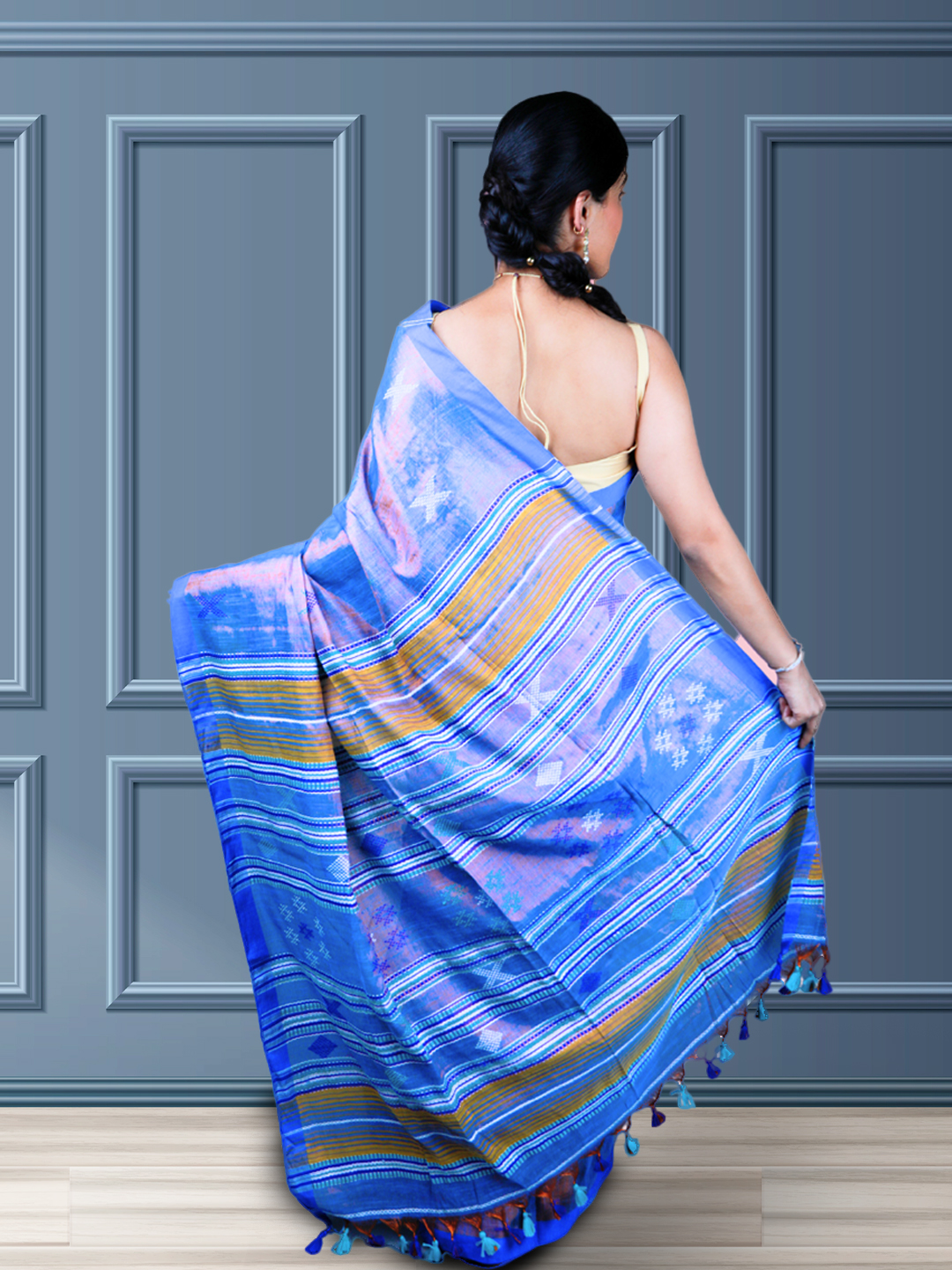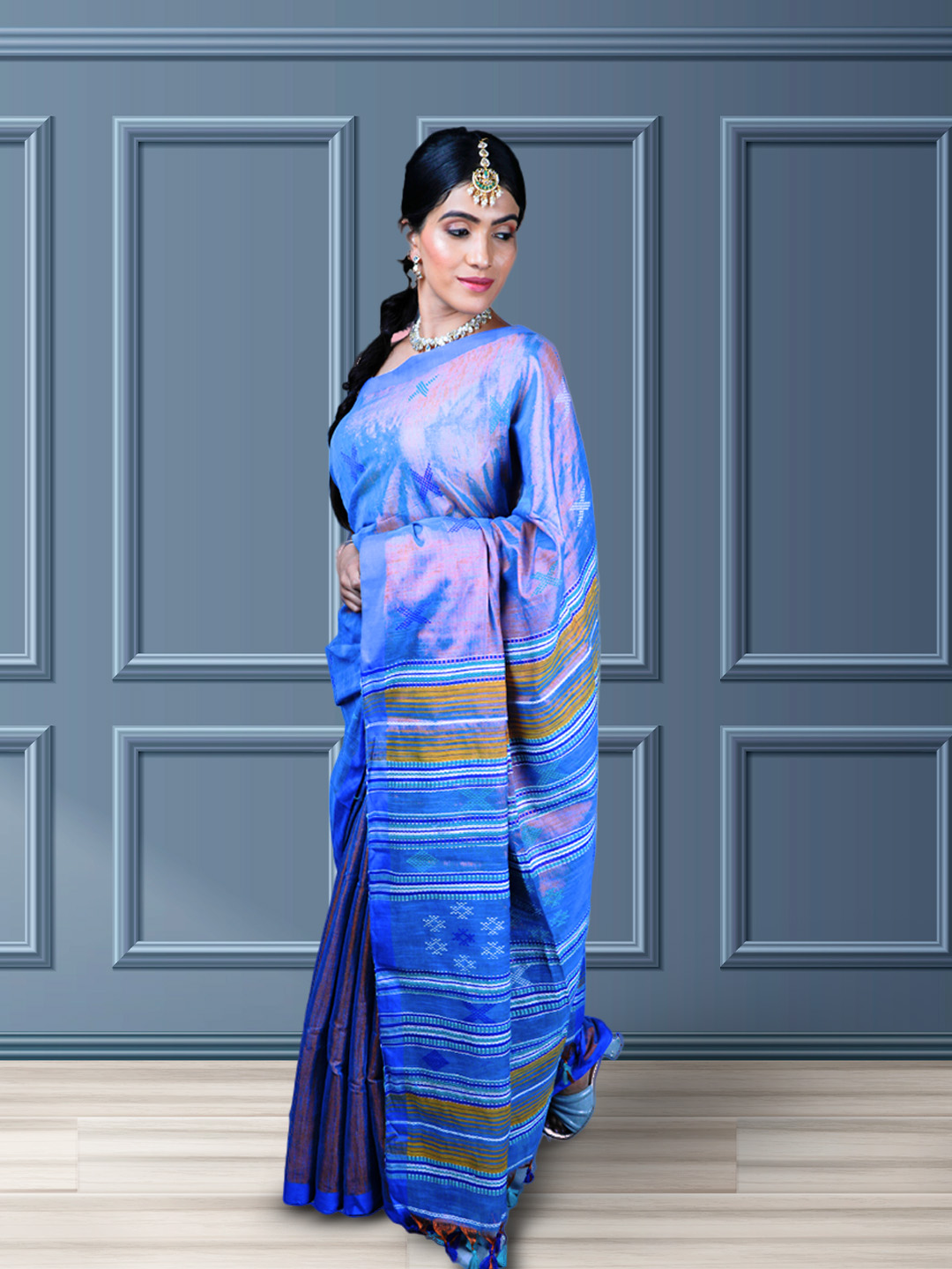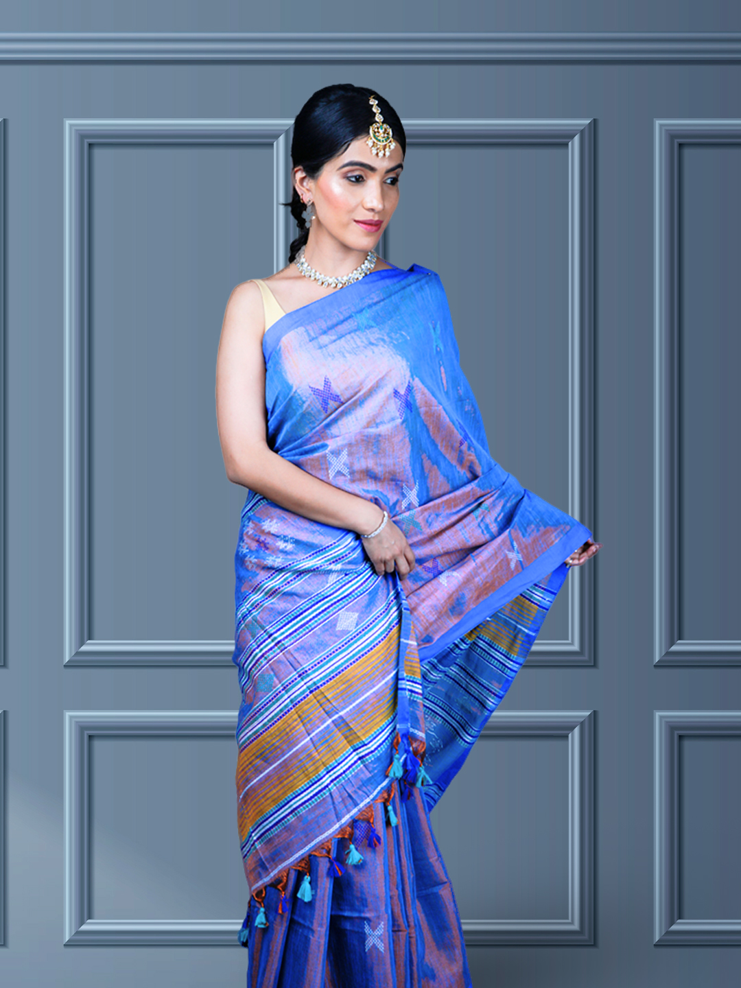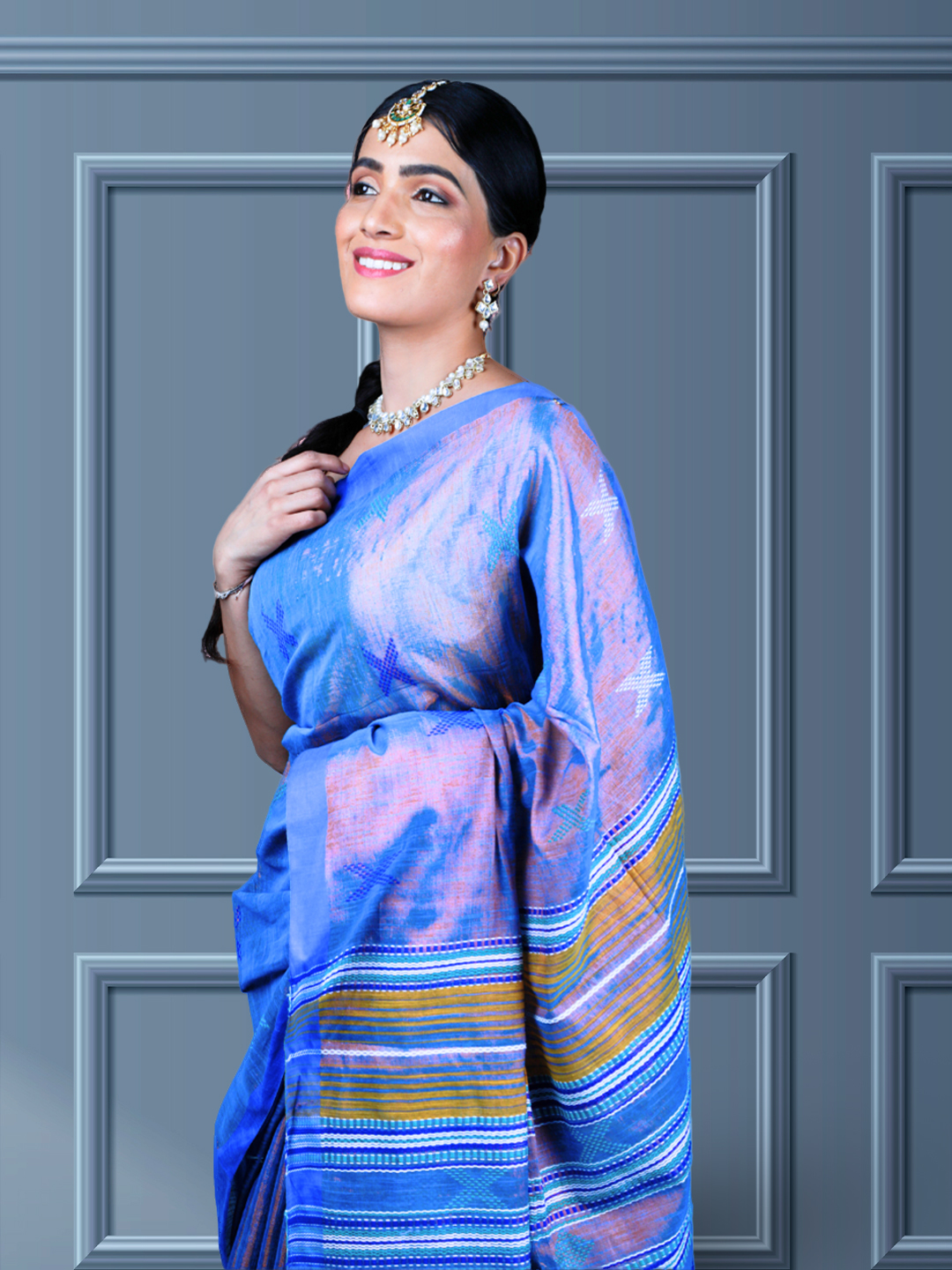 Blue Bliss Tissue Cotton Bhujodi Handwoven Saree