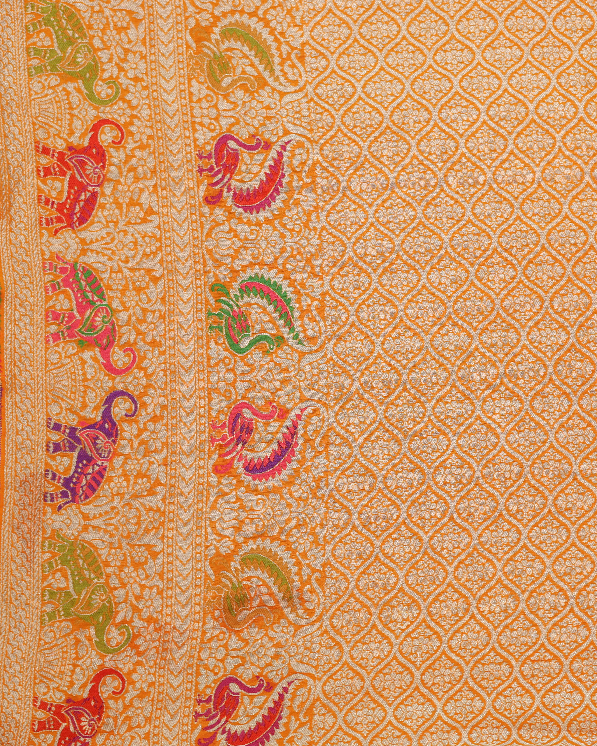 Classic Handwoven Banarasi Jangla Art Passed Down Through Generations Of Weavers Made With Cutwork (Phekva) Weaving