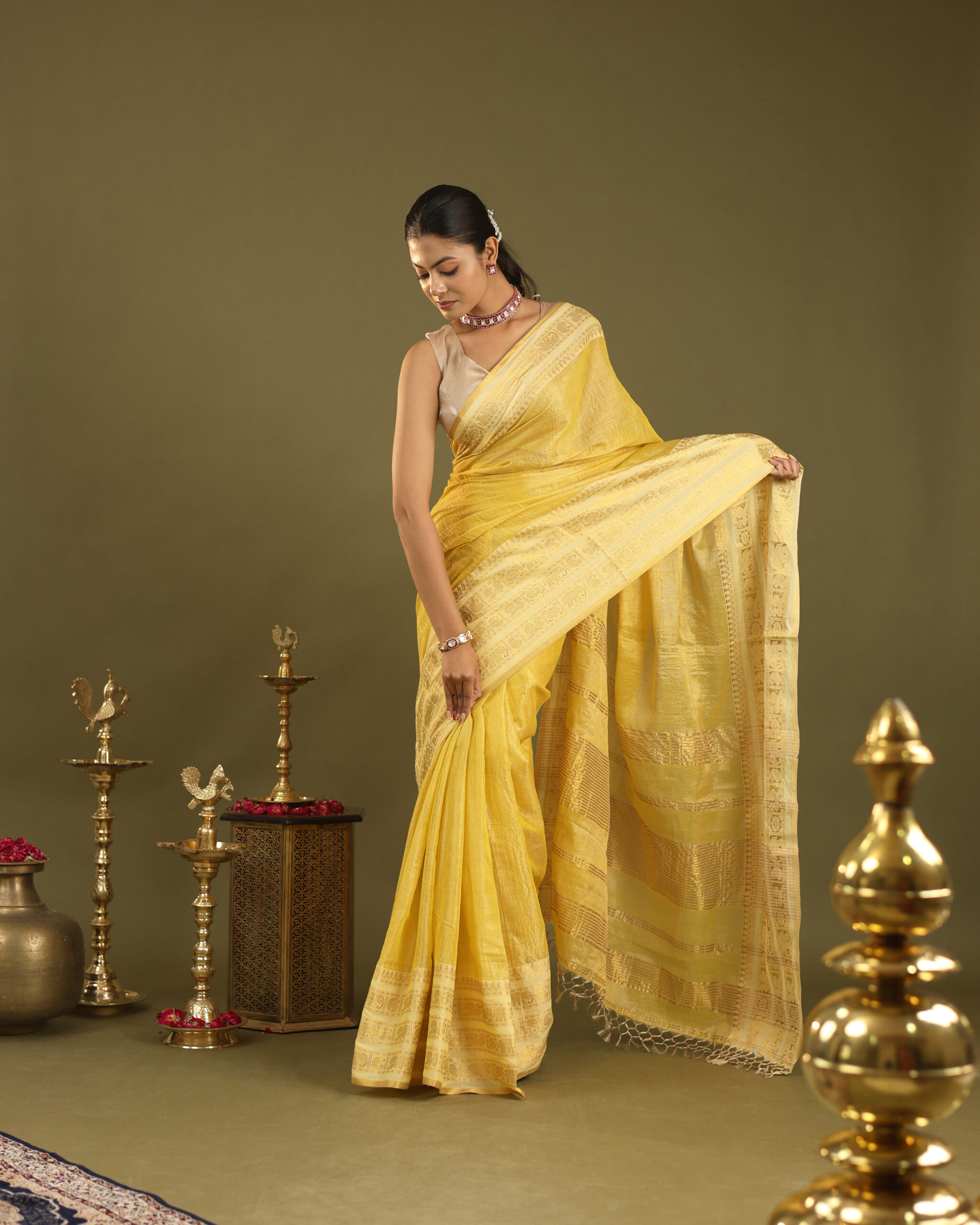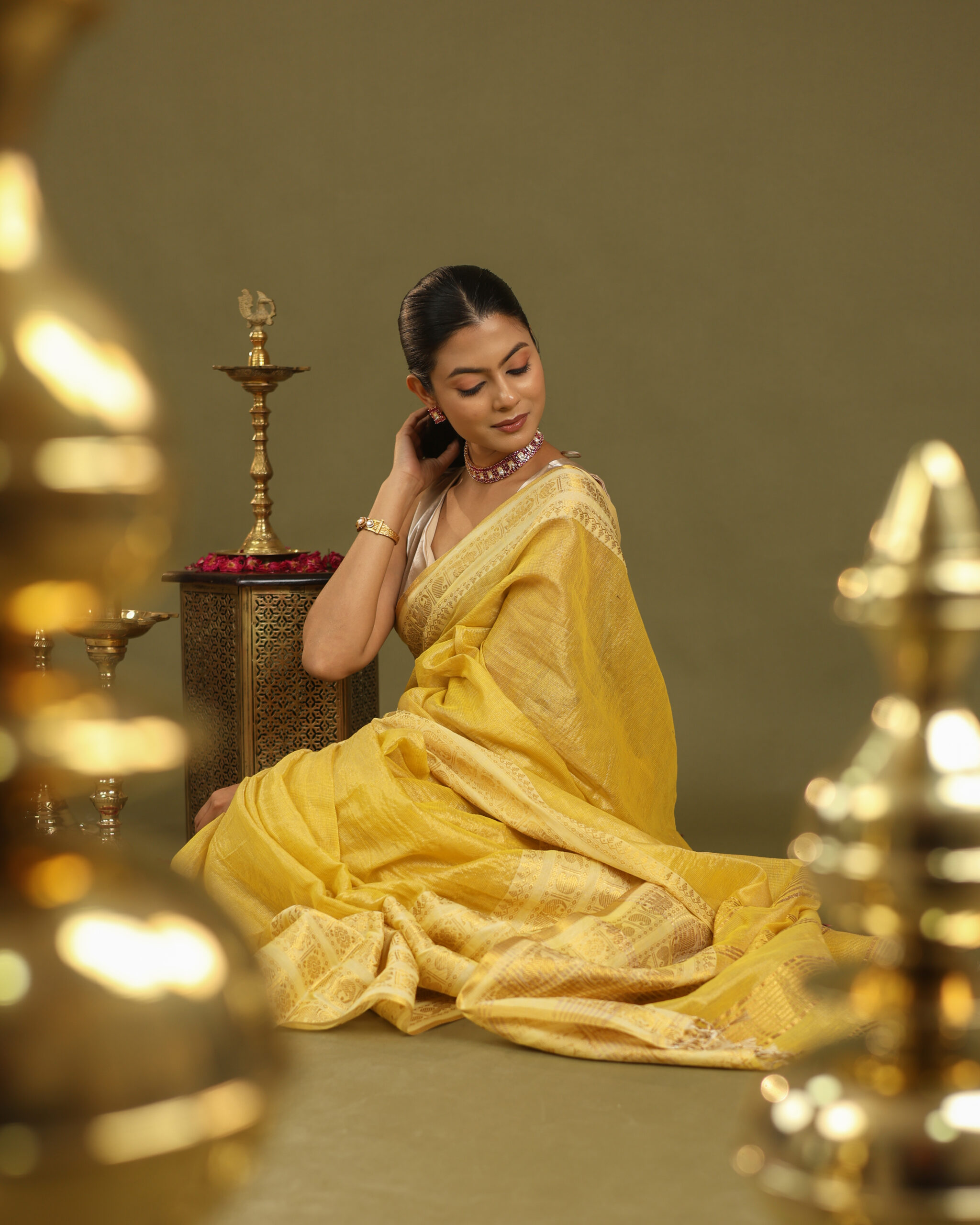 Classic Handwoven Banarasi Jangla Art Passed Down Through Generations Of Weavers Made With Cutwork (Phekva) Weaving