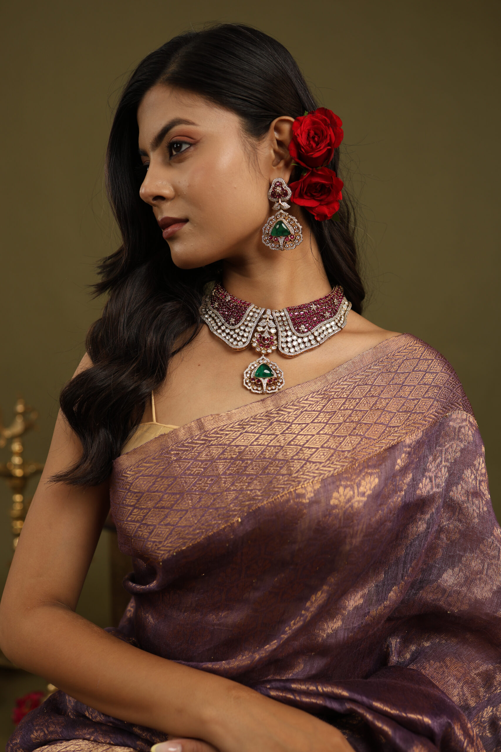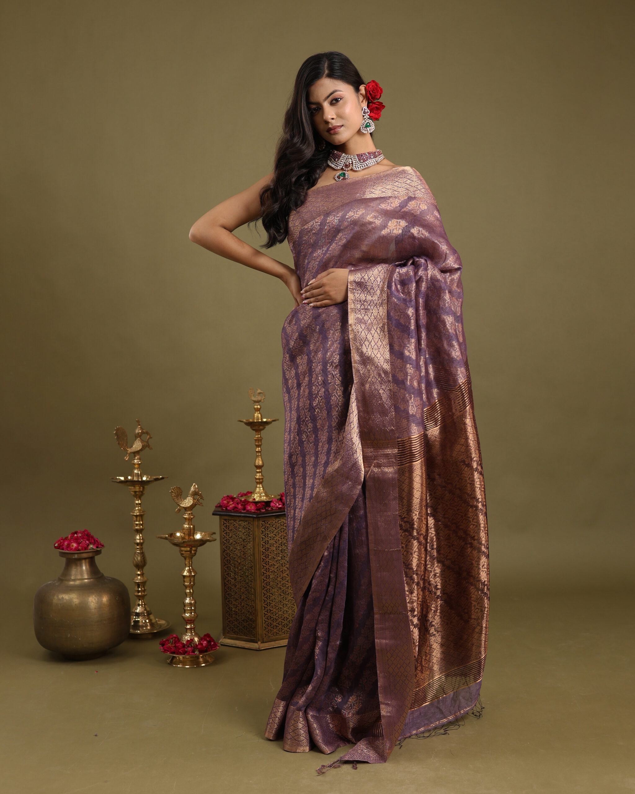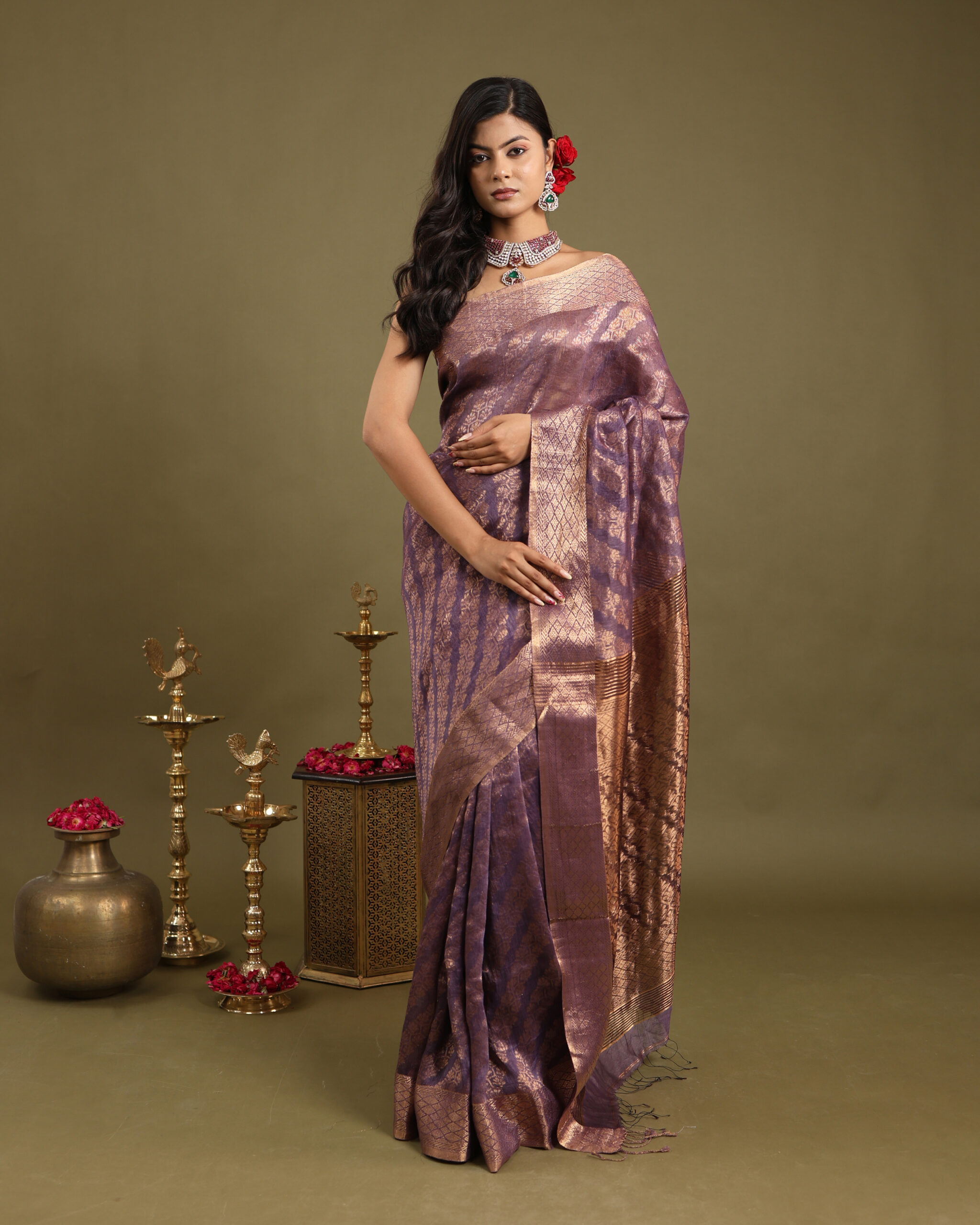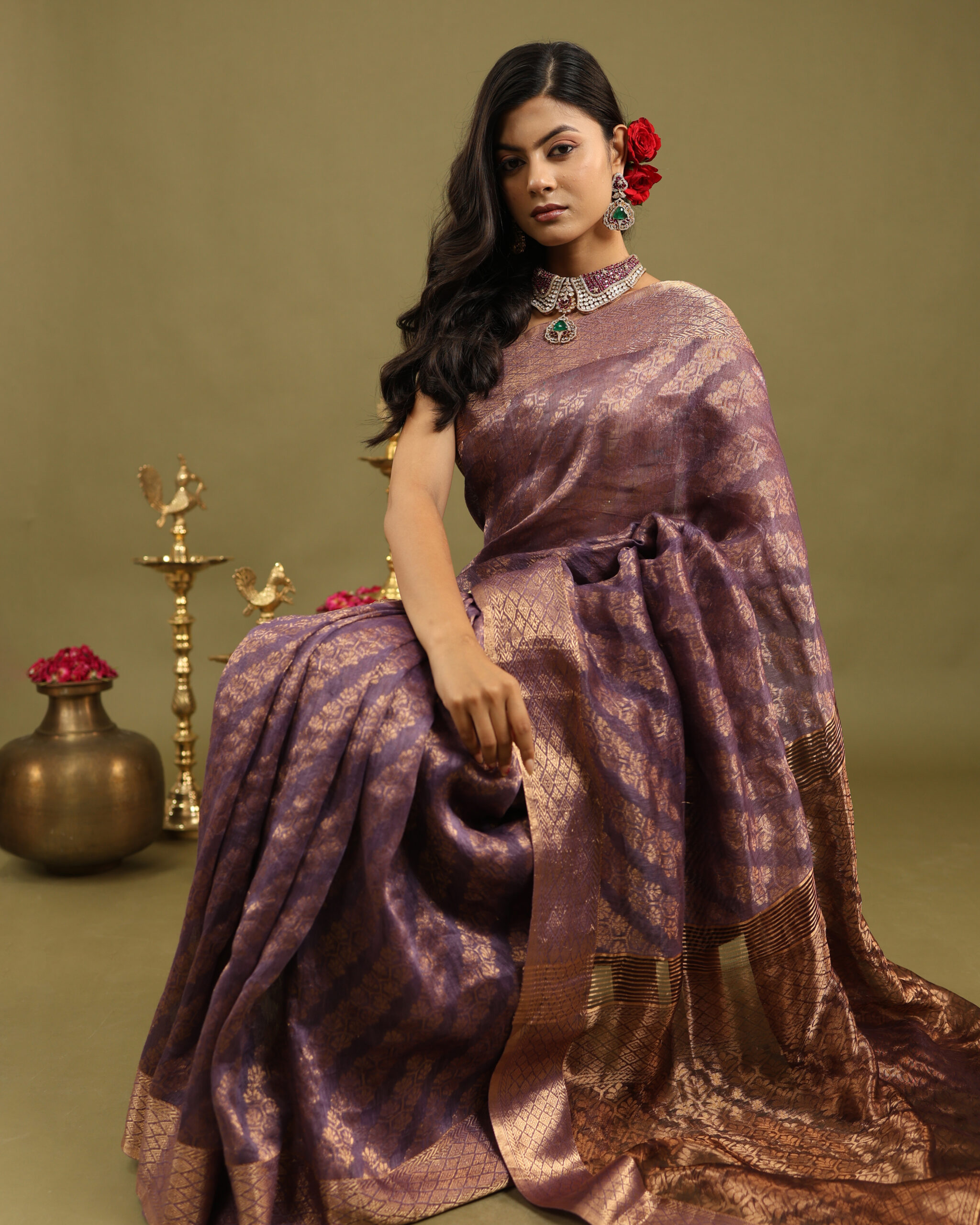 Be the first to review “Raaya Mauve Jaal Banarasi Saree”