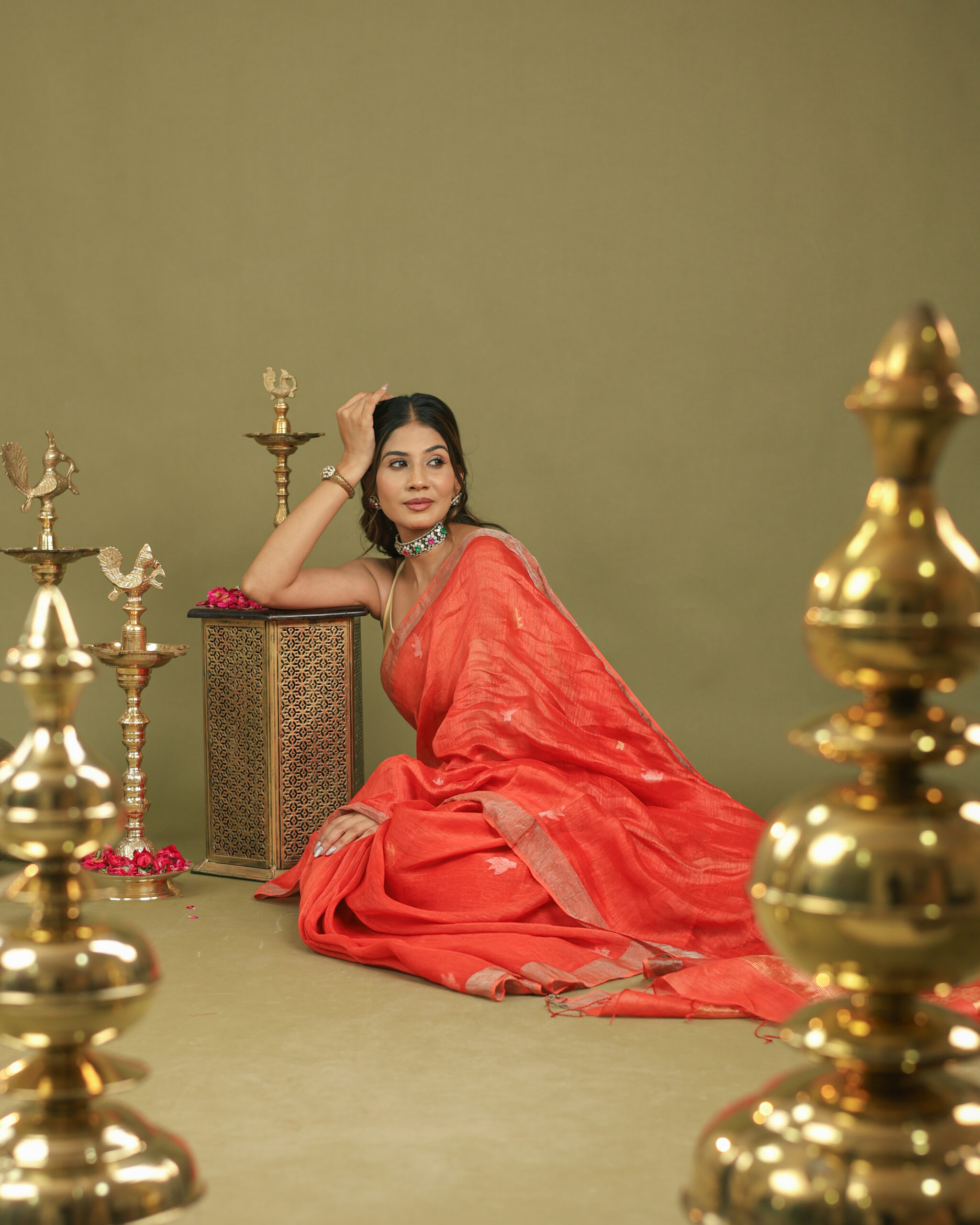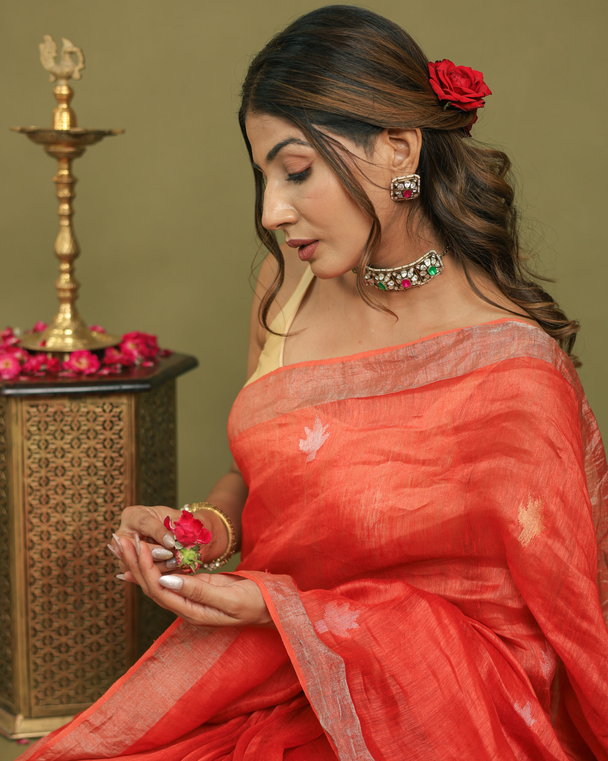 Classic Handwoven Banarasi Jangla Art Passed Down Through Generations Of Weavers Made With Cutwork (Phekva) Weaving