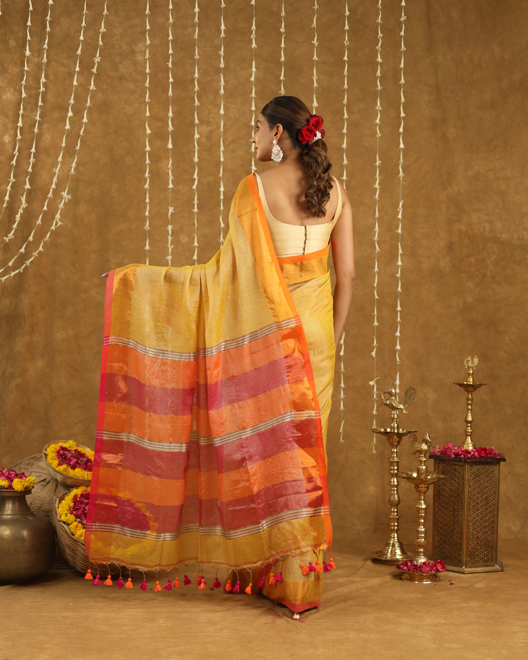 REKHARAGA Yellow with Contrast Border & Multicolour Pallu