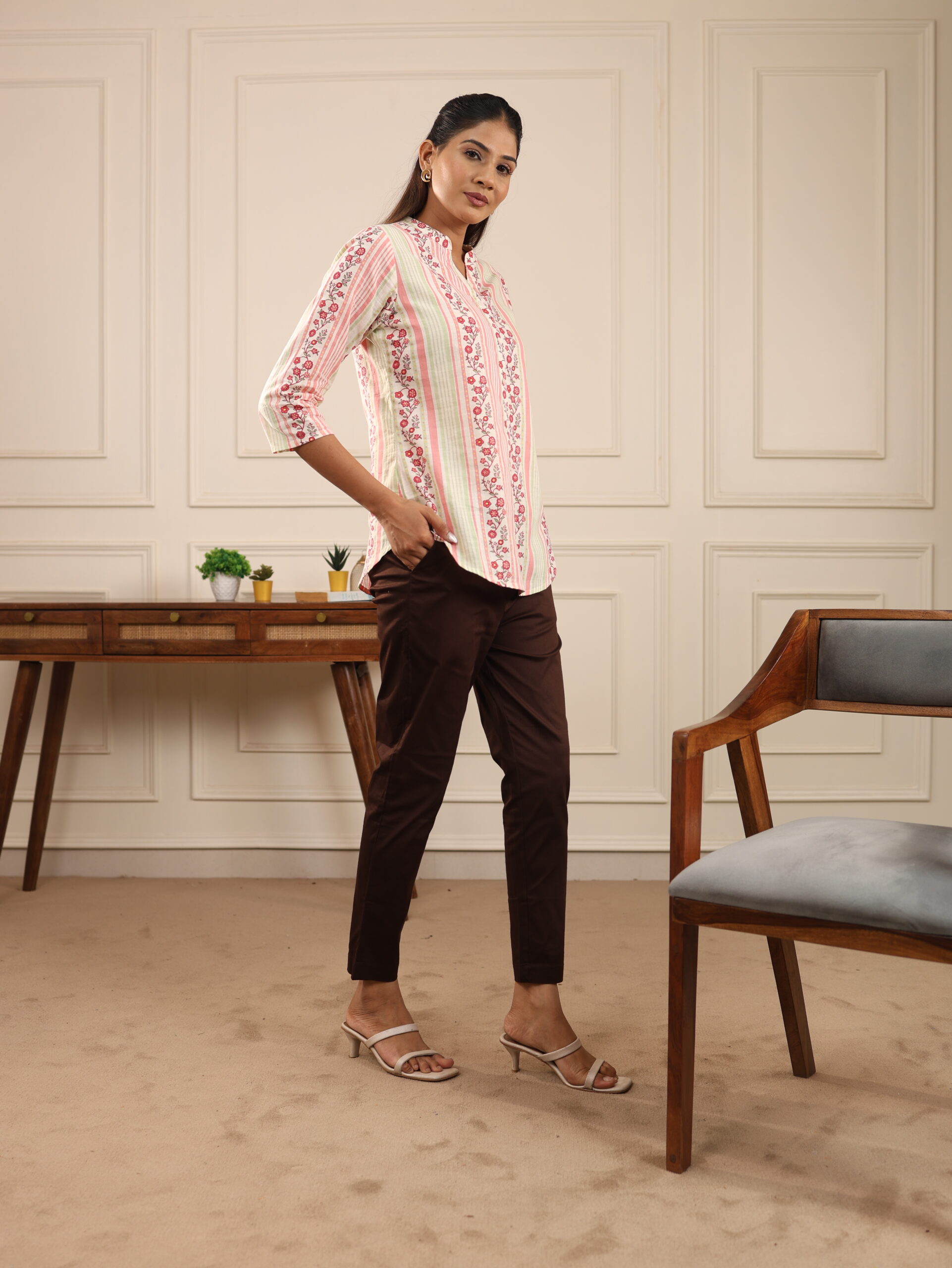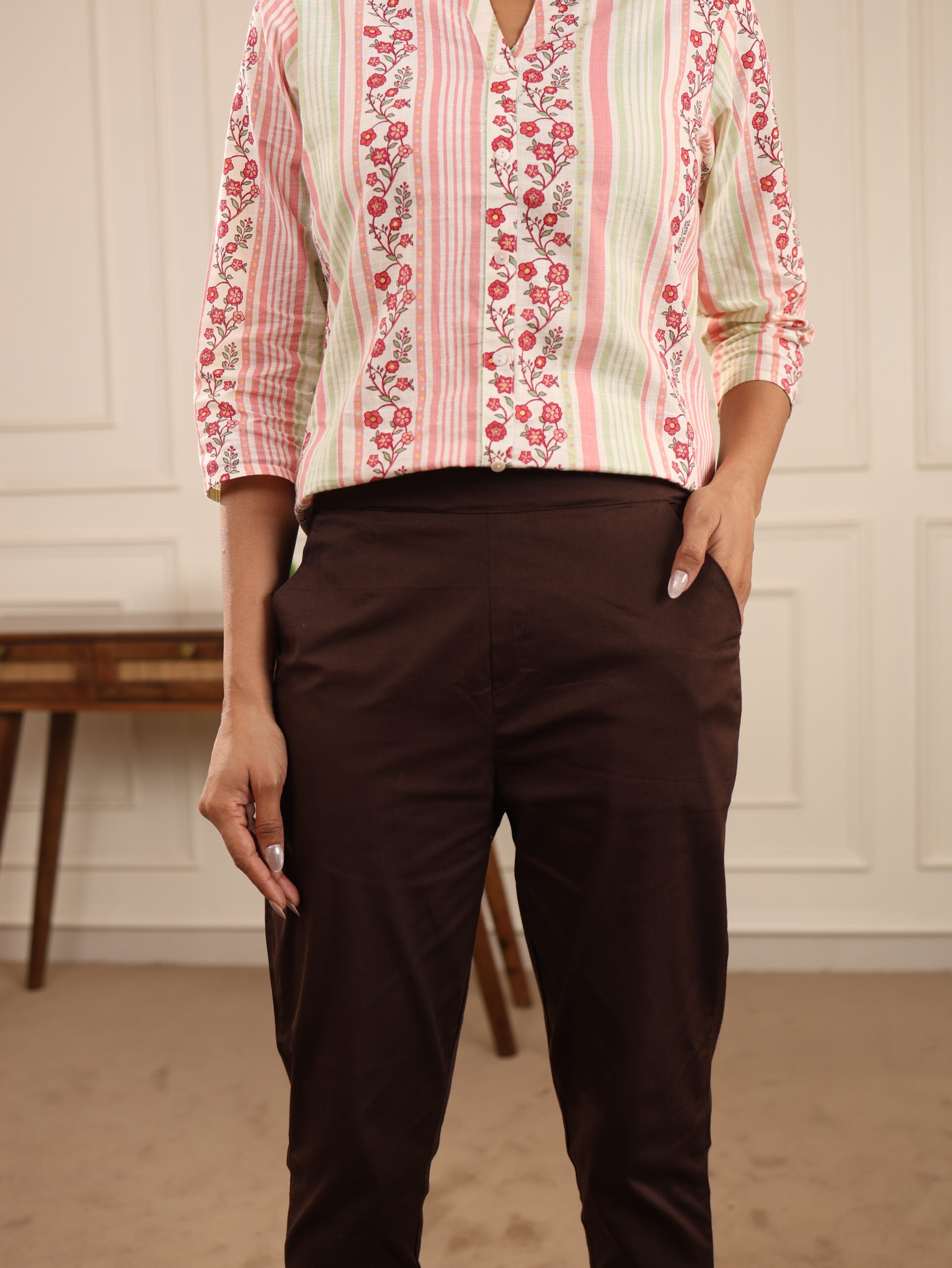 Women’s Cotton Straight Fit Pants with Pockets – Comfort Fit Dailywear – In Coffee Color