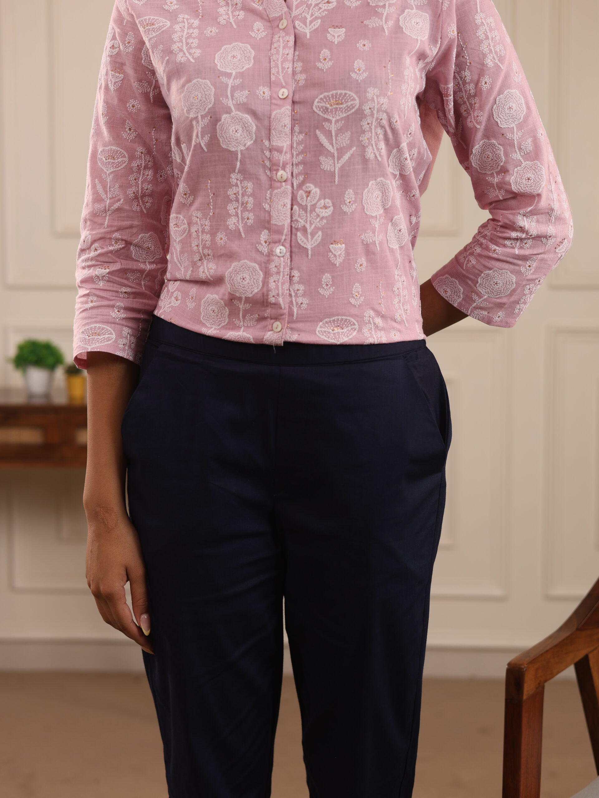 Women’s Cotton Straight Fit Pants with Pockets – Comfort Fit Dailywear – In Navyblue Color