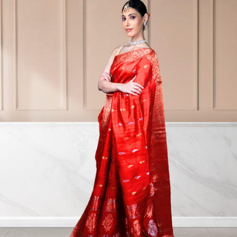 Ruby Red Matka Banarasi Handwoven Pure Silk Saree